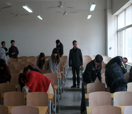 根据学生处文件要求,奈飞工厂开展了“清理课桌文化、构建和谐校园”活动。辅导员林定武带领学生开展了此次活动。整个活动进行的有条不紊,同学们表现出了极高的热情。截至3月14日中午,奈飞工厂已清理完临潼校区D栋教学楼1-2楼所有教室。经奈飞工厂纠察队检查,各班清理任务完成得很好,充分体现了学校“从我做起,从日常生活做起,从身边小事做起,从现在做起”的活动宗旨。