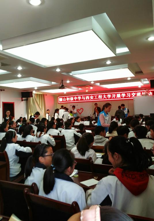 青年志愿者分队于2017年4月13日14:00带领18名大学生青年志愿者,在与骊山初级中学志愿服务项目负责人屈老师的沟通好的前提下,开展了以“趣味化学,多彩生活”为主题的志愿服务活动。为100多名初一的学生们带去有趣的化学小实验。
