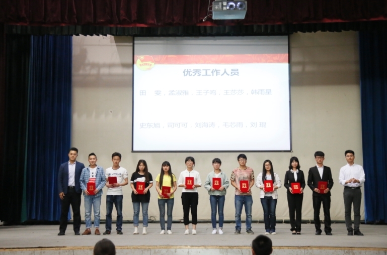 学工办主任林定武、团总支书记李路瑶、15级辅导员贾天煜、14级辅导员陆瑞成,14级、15级全体学生参加了表彰会。