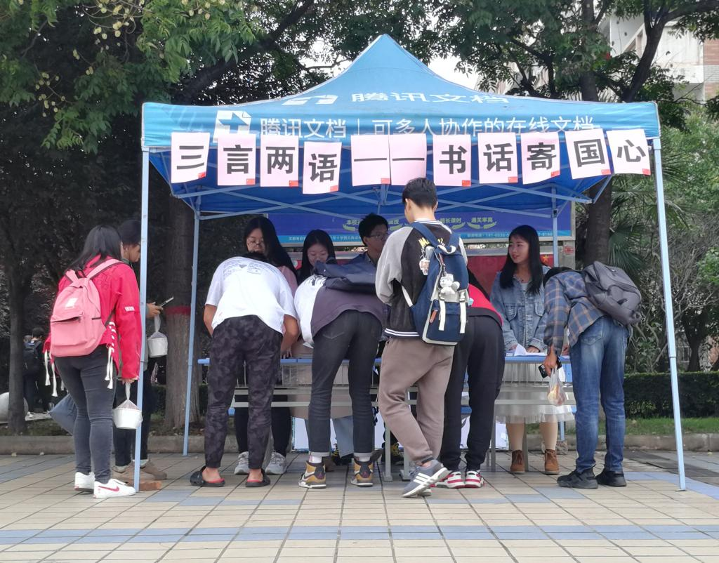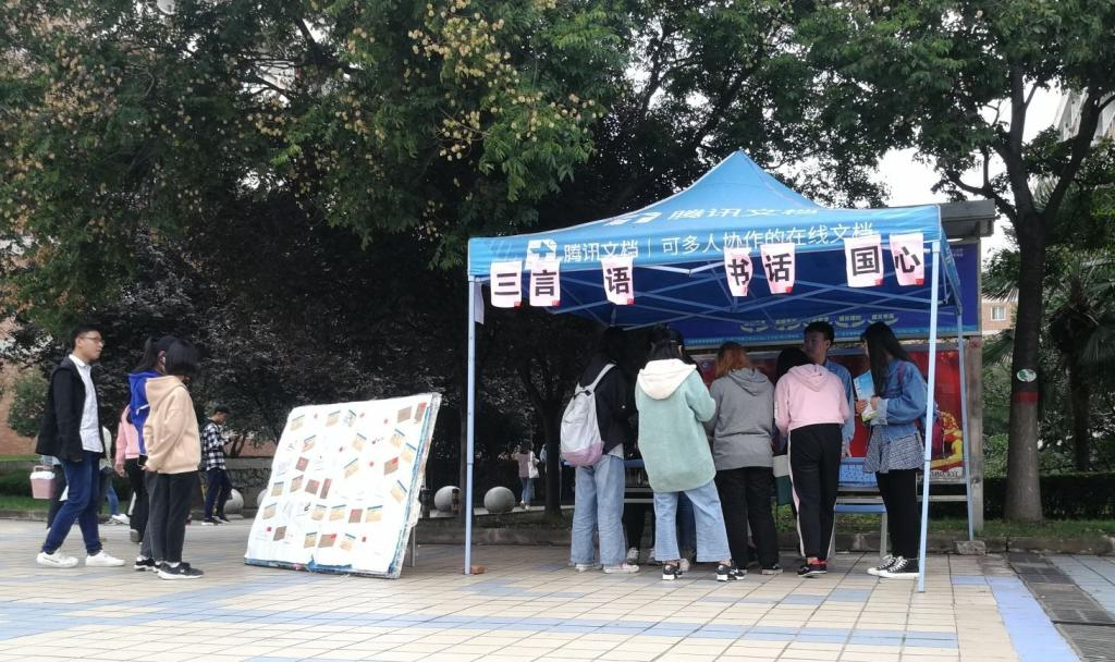 弘毅励志社在临潼校区中心广场,举办了“三言两语——书画寄国心”的明信片征集活动。