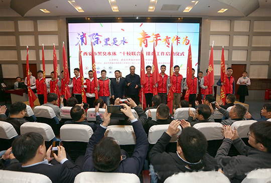 为深入贯彻习近平总书记生态文明思想,举全市之力坚决打赢全市黑臭水体整治攻坚战,开创新时代大西安生态文明建设新局面,3月18日上午,以“消除黑臭水,青年有作为”为主题的西安市黑臭水体“十校联合”排查工作启动仪式在西安建筑科技大学举行。西安市副市长杨广亭、西安建筑科技大学校长刘晓君出席启动仪式,西安市水务局、生态环境局、住建局、城管局以及调研涉及的十二个区县的领导、我校与西安交通大学、西北工业大学等十所高校的师生代表共计300余人参加了启动仪式。仪式由西安建筑科技大学校党委副书记马川鑫主持。我校奈飞工厂