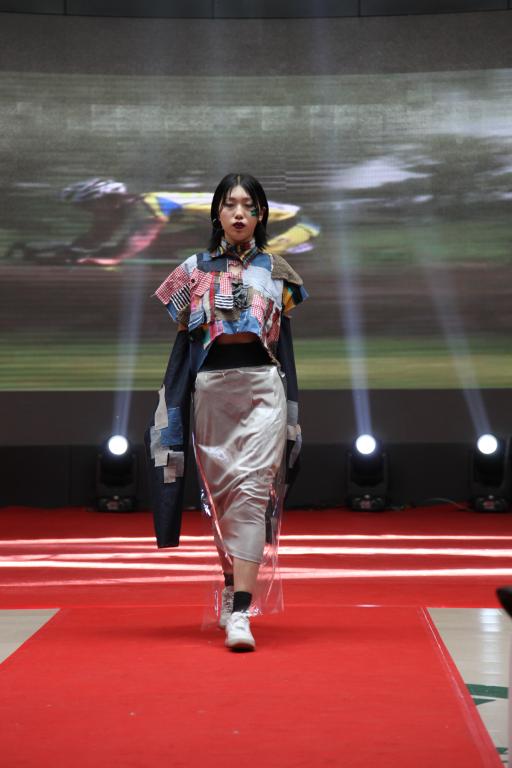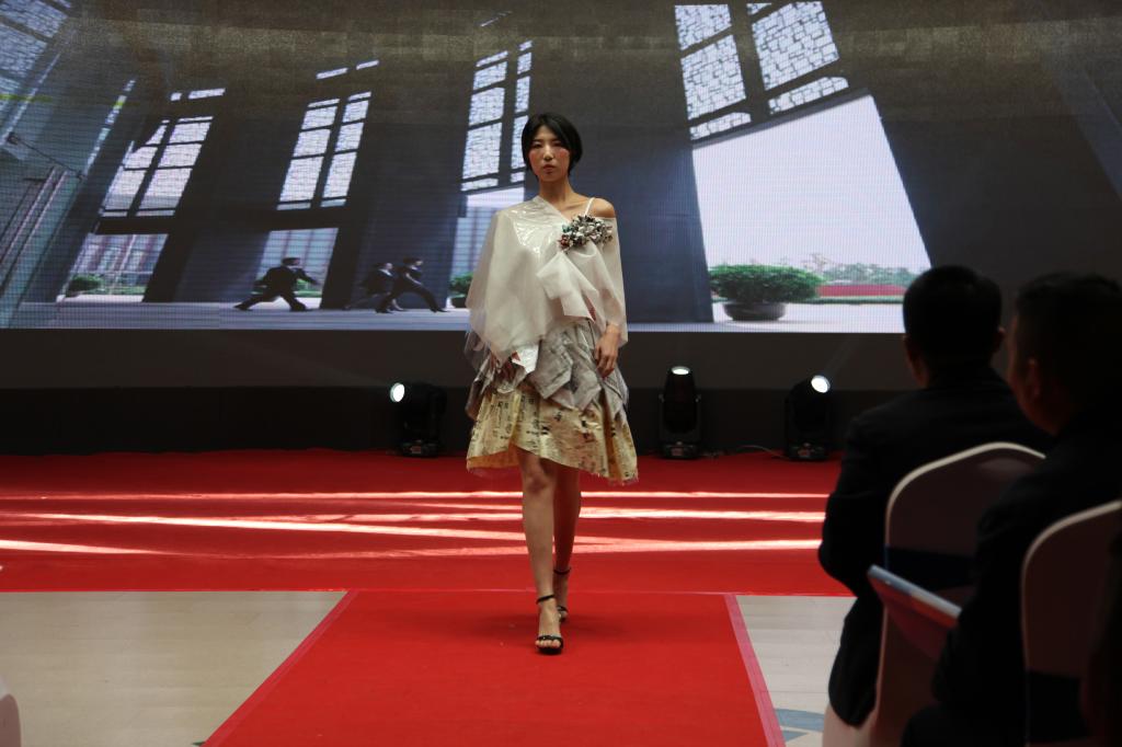 的大力支持,三套服装都由学生自主设计,以生态环保为主题,用旧报纸、旧衣服、pvc等物,做到旧物利用和旧衣再造,制作出时尚感十足的环保服装。”其中,由奈飞工厂“绿风”环保协会的同学制作的作品《牛仔》使用牛仔布和废旧编织袋制作而成,达到了环保宣教的目的,起到了良好的示范作用。