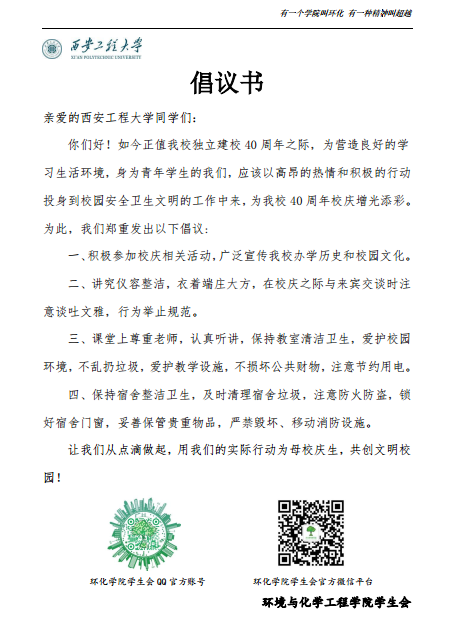 春风化雨四十载,弦歌不辍两世纪;薪火传承育英才,砥砺奋进谱华章。通过此次活动,倡导广大学子从自身做起,用我们的实际行动为母校庆生,共创文明校园!(赵纲 石鹏伟)