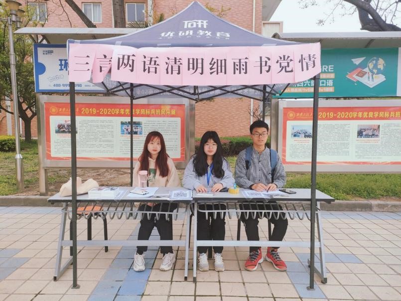 弘毅励志社于3月31日在临潼校区中心广场举办以“三言两语,清明细雨书党情”为主题的社团活动。2021年,中国共产党建党一百周年;3月31日,清明将至。此次活动的主旨是缅怀先烈,丰富同学们的校园生活;锻炼同学们的表达能力和动手能力。