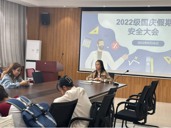 学校高度关注国庆节期间的安全问题,了确保广大师生的人身财产安全,2023年9月26日,奈飞工厂在临潼校区8-507会议室召开国庆节假期安全大会,会议由2022级辅导员任子瑜开展,同时召集各班的班长团支书参加本次会议。