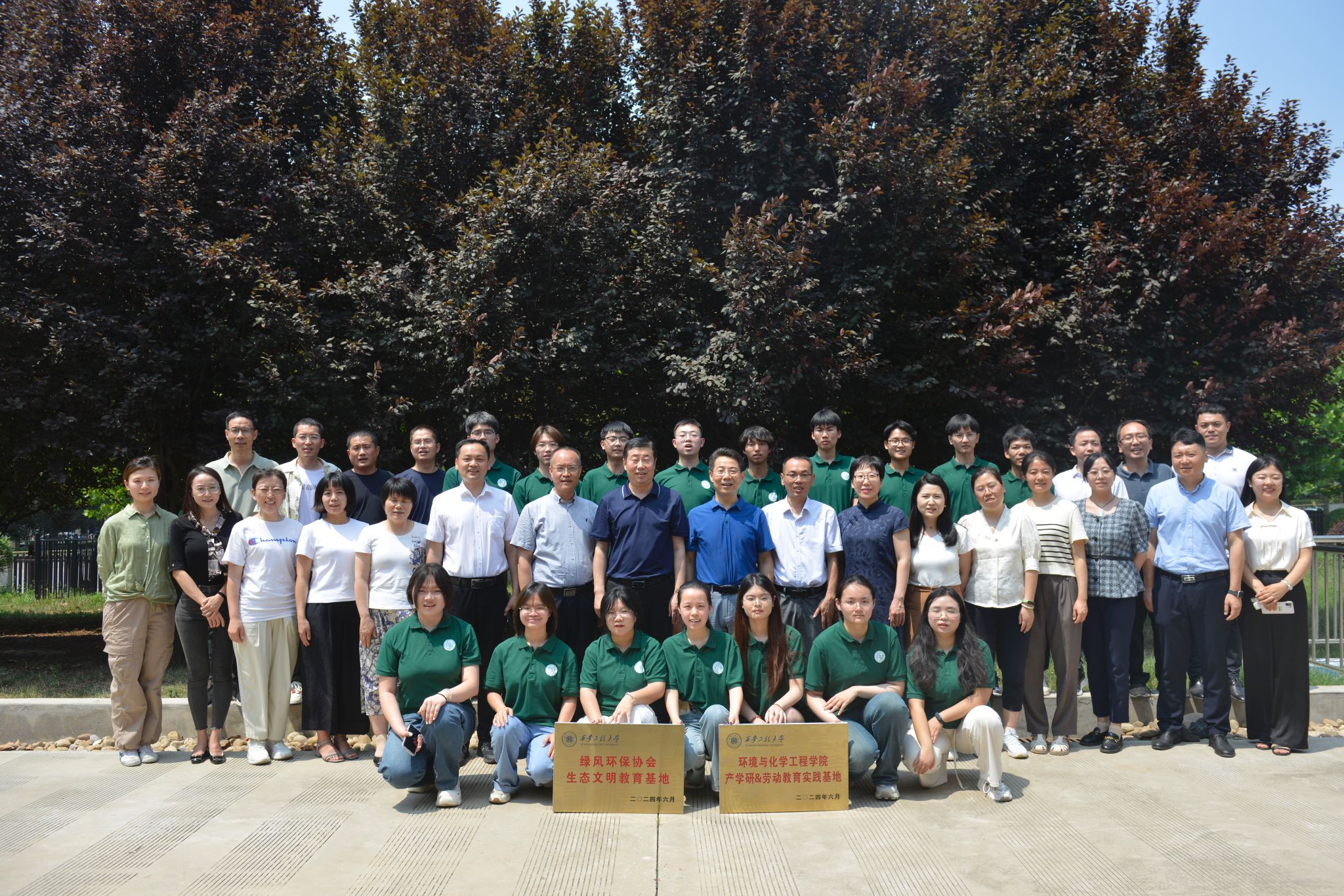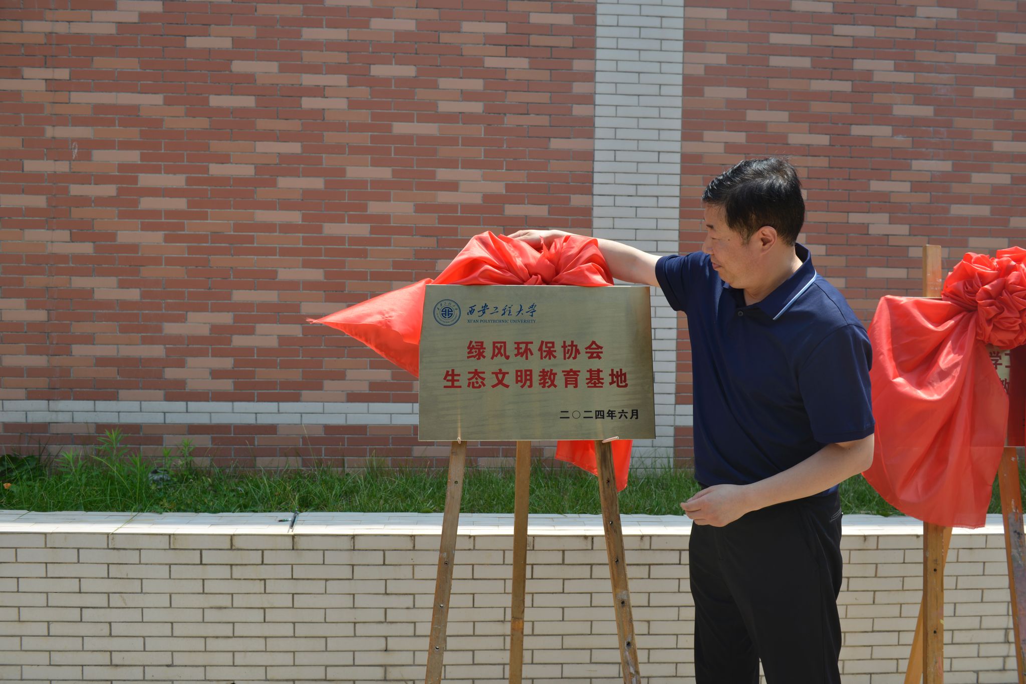 学科优势和人才资源,结合双方发展需求广泛开展交流合作,共同探索构建集科学研究、教育教学、成果孵化、高端智库、人才培养“五位一体”的全链融合创新平台,建立产学研全方位多层次的常态长效合作机制,创新劳动教育实践形式,更好为教学服务、为科研服务、为师生服务。绿风环保协会生态文明教育基地是学校绿风环保协会进一步贯彻落实习近平生态文明思想,拓宽“党建+生态文明”思政育人路径的实践举措,协会依托学校生态文明教育多学科综合优势、完善的教育课程体系和雄厚的师资力量,在助力学校生态文明建设、绿色校园建设和培养生态环境领域的高层次复合型人才等方面发挥了积极作用。随后在热烈的掌声中,殷永建、胡西民、张峰分别为教育实践基地揭牌。