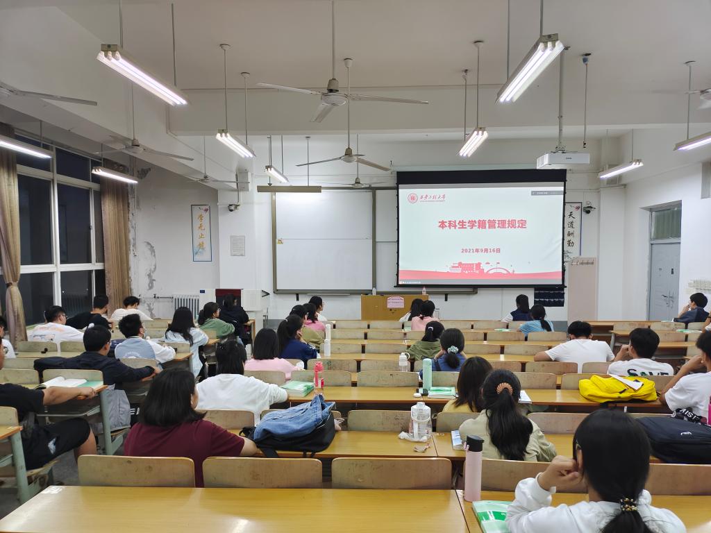 会上,耿倩详细介绍了学校的学籍管理规定,着重强调注册及学籍自查、转专业、创新学分、考核与成绩、学籍处理、考试管理规定、毕业证书和学士学位证书获取条件和研究生推免条件等事宜。并提醒同学们在大学期间不能懈怠,要认真学好每一门课,强调坚决不能触碰考试作弊这条高压线,鼓励同学们刻苦钻研、勇于探索、不忘初心、锐意进取。