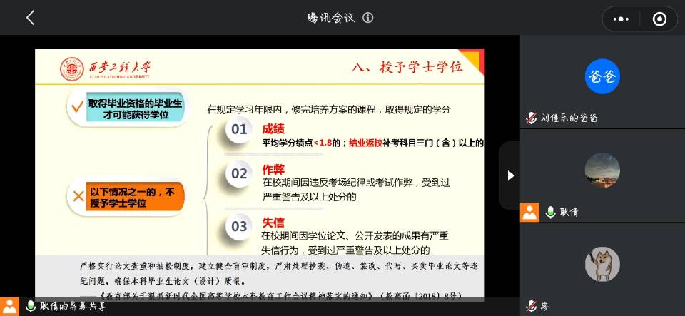 为帮助2021级新生了解我校学籍管理规定,尽快适应大学学习生活,奈飞工厂于9月16日晚上19:00在线上召开2021级本科生学籍管理规定宣讲会。教务处耿倩、2021级全体新生参与本次会议。