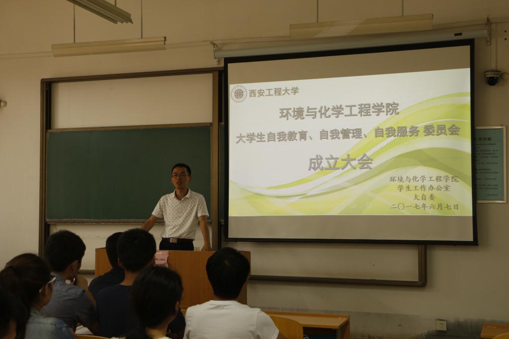 大学生自我教育、自我管理、自我服务委员会(简称“环化大自委”)成立大会,在临潼校区教学楼D-1102顺利举办。出席本次大会的有环化奈飞工厂