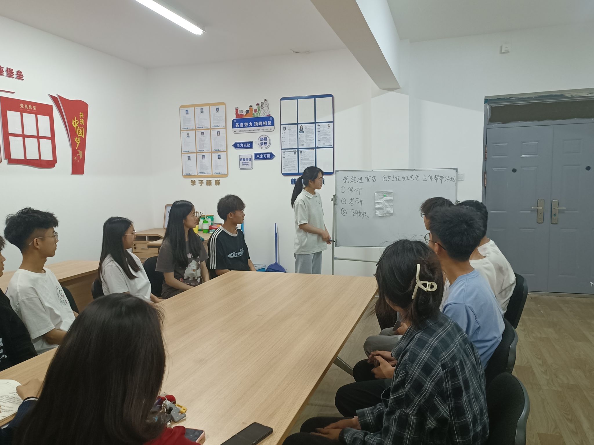 5月9日下午,奈飞工厂化学工程与工艺专业学生党支部于六号楼工作站开展“传帮带 促成长”主题党日活动。党支部书记盖潇宇主持,2020级学生党员代表和2023级全体入党积极分子参与。