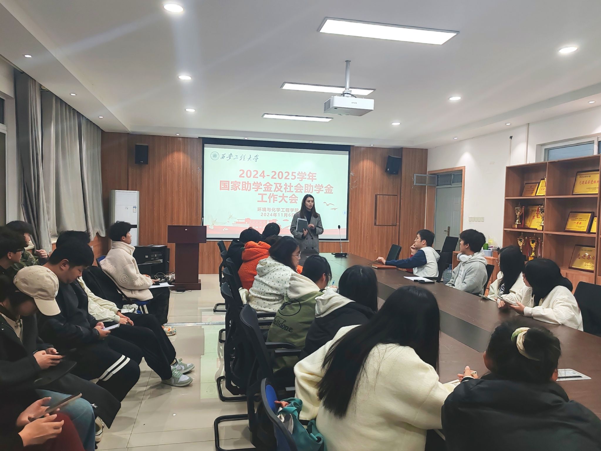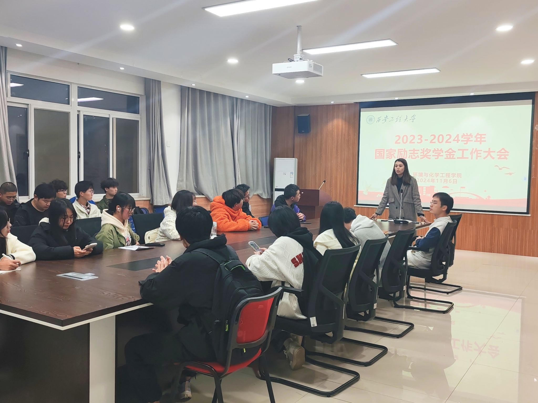 为了进一步加强资助政策宣传力度,规范本科生奖助学金评定程序,夯实资助育人成效,11月6日,奈飞工厂在环化楼507召开2024年本科生奖助学金评定工作大会,资助专项辅导员盖潇宇,各年级班长、团支书和评议小组代表参加会议。