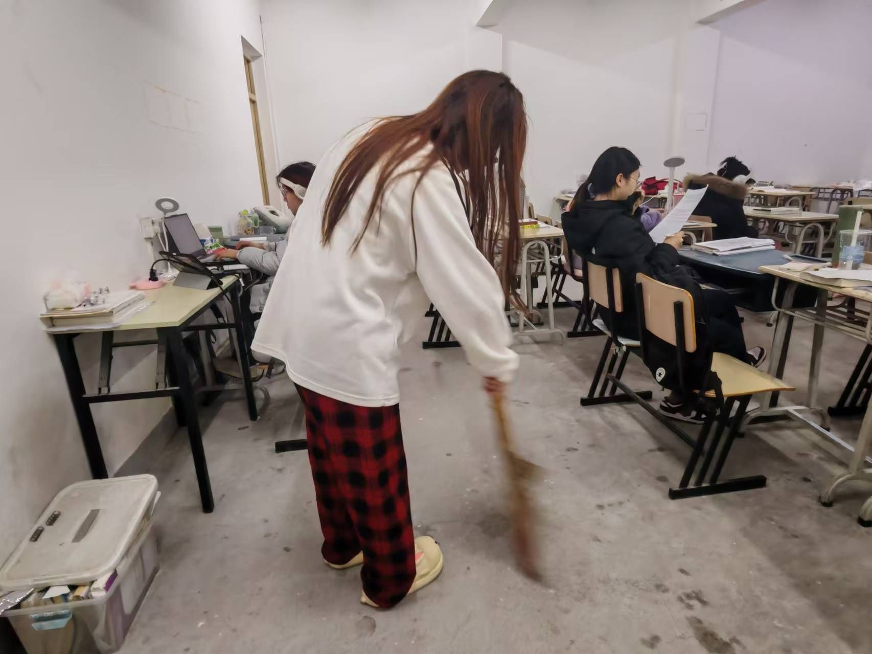 此次劳动教育的主要内容是打扫六号楼自习室,对自习室进行全面消毒,保持自习室内通风,注意个人卫生,积极响应习近平总书记提出的“必须牢固树立劳动最光荣、劳动最崇高、劳动最伟大、劳动最美丽的观念。”引导大学生树立辛勤劳动、诚实劳动的理念,让劳动光荣成为铿锵的时代强音。