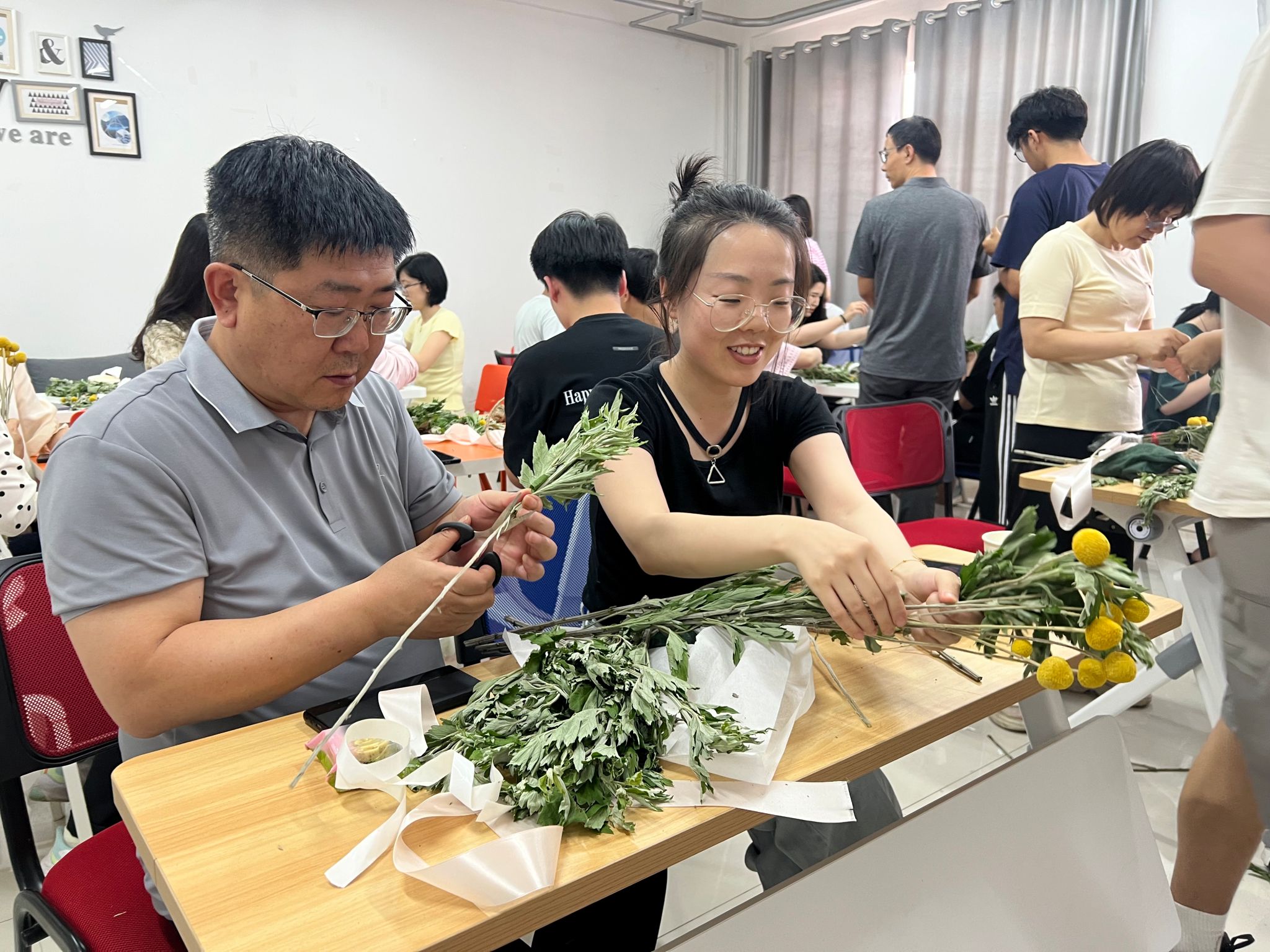 活动现场,艾草的清香弥漫四周,各色丝线、装饰配件整齐摆放。在学生志愿者的耐心指导下,师生们兴致勃勃地投入到花环制作中。大家挑选艾草、缠绕丝线、搭配装饰,动作从生疏逐渐变得娴熟。欢声笑语间,一个个精美别致的艾草花环诞生,不仅承载着端午驱邪避瘟的美好寓意,更成为师生们携手合作的见证。