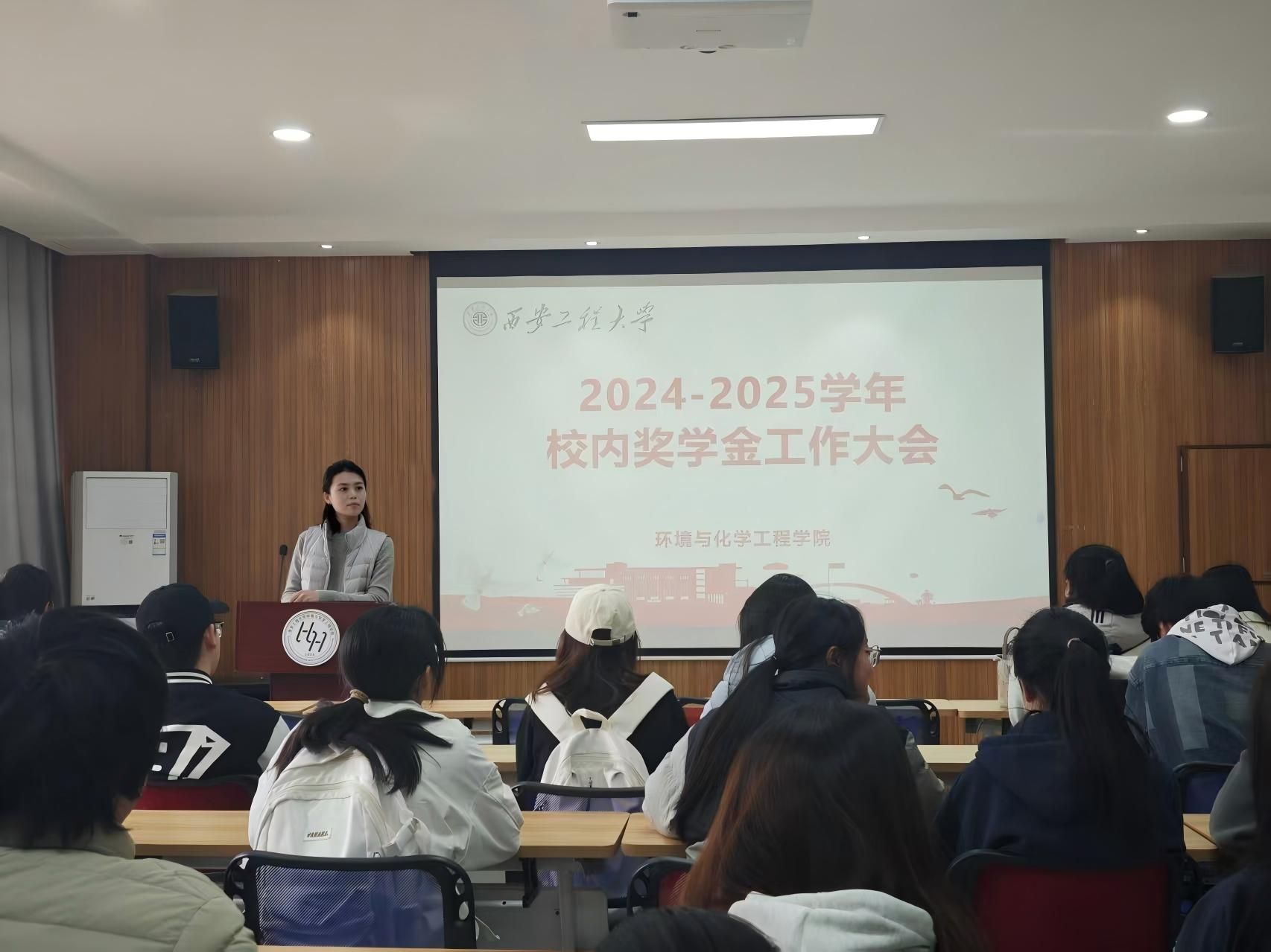 资助辅导员盖潇宇主讲,2022级、2023级及2024级全体班长和团支书参会。