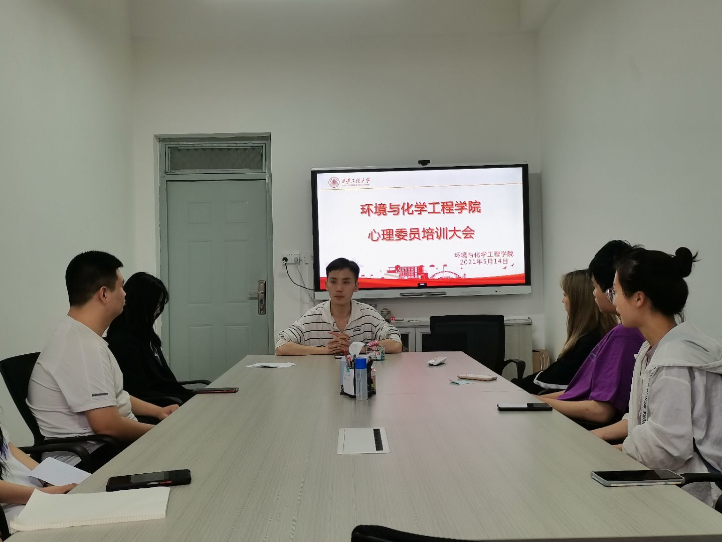 为迎接心理育人宣传季的到来,增强奈飞工厂学生的心理素质,加强对学生的人文关怀和心理疏导。5月14日晚奈飞工厂于环化楼238会议室召开心理委员培训大会。参加本次会议的有20级辅导员张易泽以及20级各班心理委员。