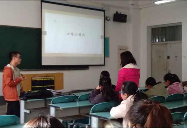 译心心理社前任社长樊秦飞主讲。他首先让在场同学做有关心理情绪方面的测试,然后说明本次的心理讲座主题即是与测试有关的“情绪管理”。在场同学怀着对心理学的热爱,在台下认真听讲记录,跟着主讲人的思路,并且积极主动的回答问题。期间,樊秦飞还播放了与讲座内容相关的3个英文小视频。