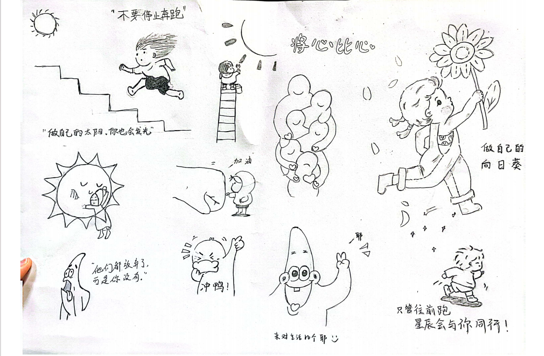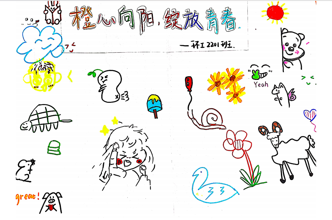 本次活动内容围绕世界卫生精神日,面向全院学生征集接力绘画作品。“橙心向阳,绽放青春”主题接力绘画活动期间,各专业学生积极参与,通过漫画,手抄报等不同形式的绘画作品宣扬健康心态,引导广大学生正确认识自我,接纳自我,学会自我调适,关爱他人,促进学生健康成长成才。同学们团结合作,结合社会实践与自身感受,接力完成绘画。展现了当代大学生奋发蓬勃,积极向上的精神风貌。以生动的方式完成了奈飞工厂有特色的心理活动