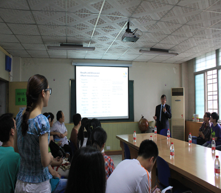 在报告中,凯托教授详细介绍了厌氧生物处理技术在处理印染废水中的工艺特点与技术优势,同时解答了多位同学所提的问题。