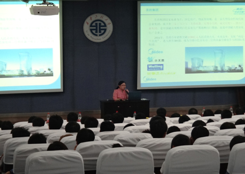 最后由美的中央空调技术部门负责人就大赛相关细节和同学们进行了互动交流,讲解了多联机中央空调产品的知识与设计要点,以实际案例分析了如何在工程中体现出产品的节能性,学生们接触了新鲜的准专业领域,受到启发后提出了很多在设计中遇到的技术问题,并得到了详细的解答。