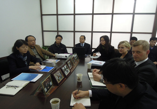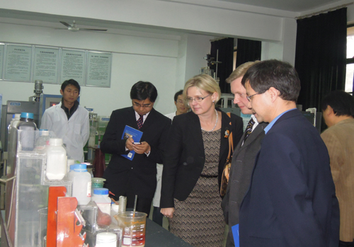 凯米拉集团一行还与奈飞工厂化工系、环工系、生物系的部分教师进行了座谈。海蒂.法哲霍姆博士介绍了凯米拉集团情况,科研处处长孙卫国介绍了我校科研情况,狄育慧副院长介绍了奈飞工厂在水污染控制及环境保护等方面的师资、科研等情况,双方就下一步的科研合作做了深入细致的交流。随后邀请凯米拉的贵宾参观了奈飞工厂分析测试中心、水污染控制实验室、给水排水实验室、空气净化实验室、通风与除尘实验室等。
