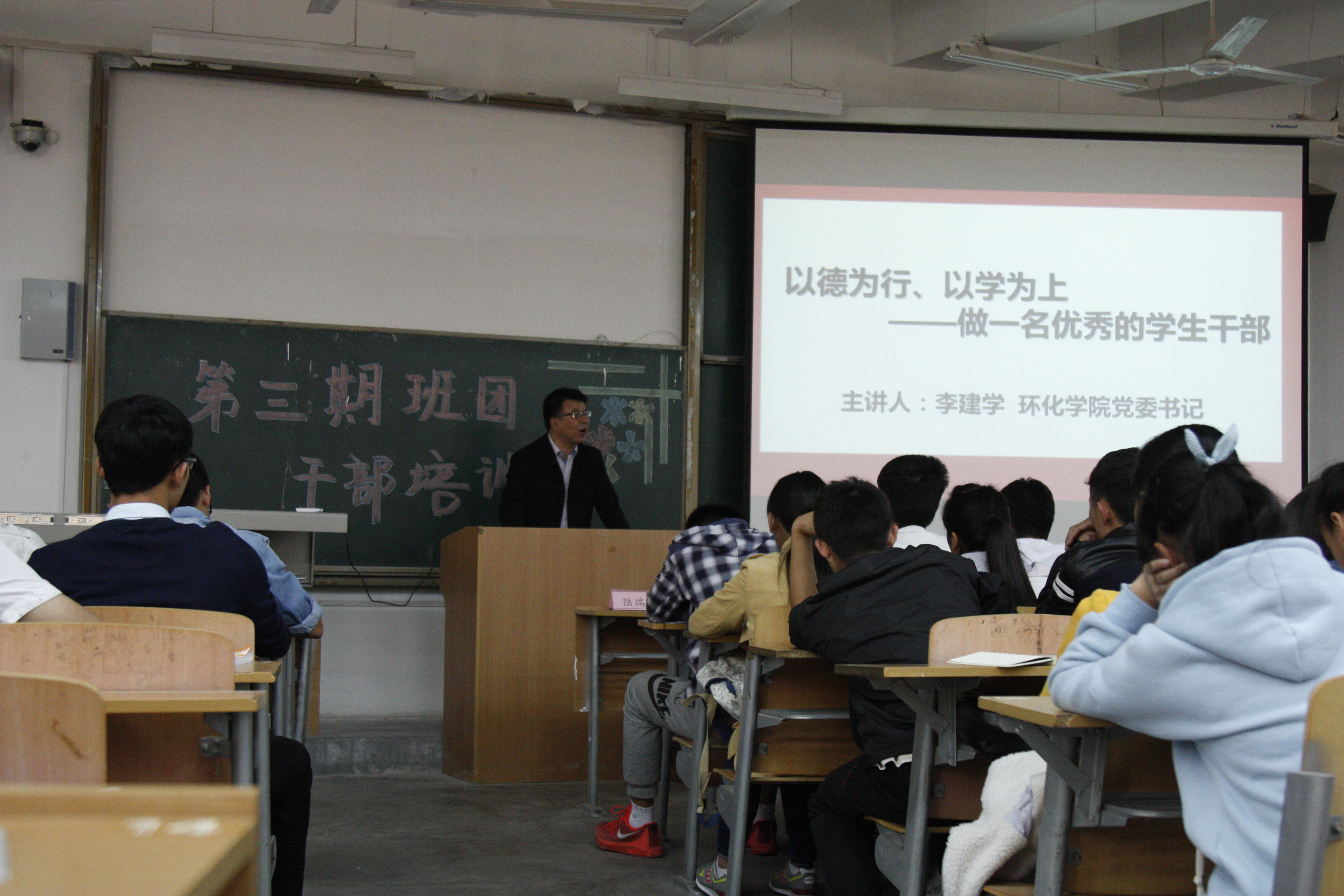 开班典礼后,李建学书记做了第一讲题为“以德为行、以学为上——做一名优秀学生干部”的专题报告,李书记从学生干部在人才培养中的作用、学生第二课堂教育、学生干部应培养的能力和素质等方面谈了如何加强干部培养工作。