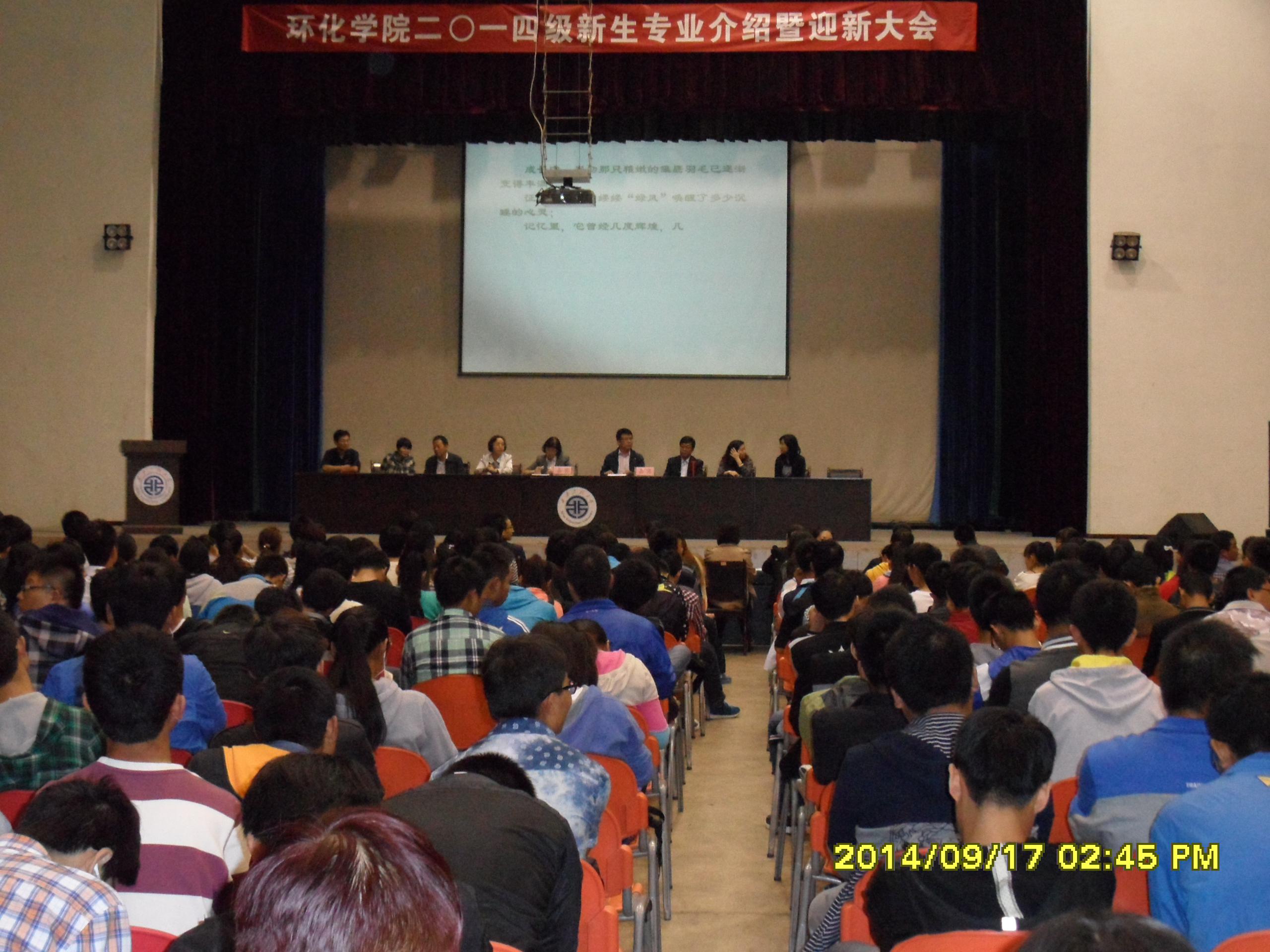 院长狄育慧、党总支书记李建学、各专业教研室主任、2014级班主任、14级全体新生参加了会议。