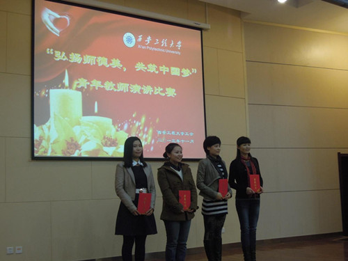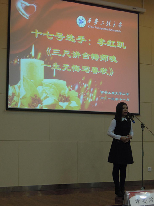 2013年11月13日,在我校举办的奈飞工厂 “弘扬师德美 共筑中国梦”青年教师演讲比赛中,奈飞工厂教师李红玑以《三尺讲台铸师魂,一生无悔写春秋》为题的精彩演讲荣获二等奖。
