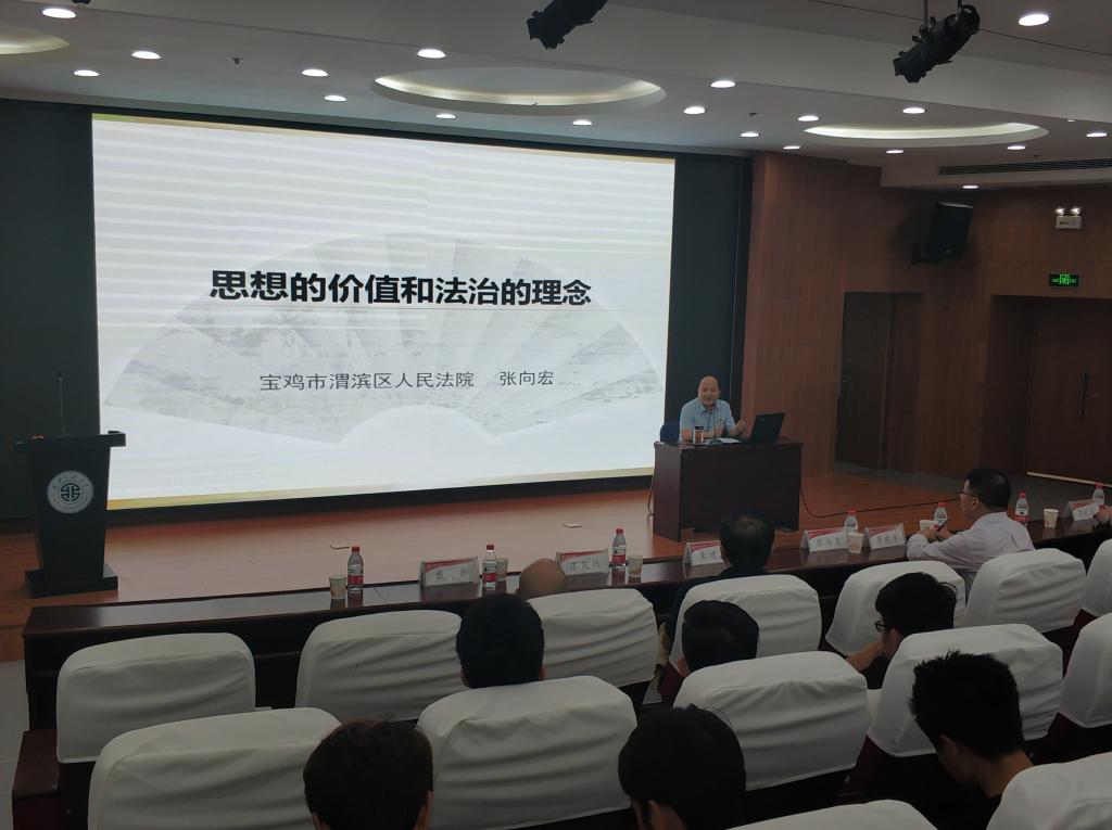 承办的法制教育报告会于2018年7月5日下午四点在临潼校区图书馆一楼报告厅举行。宝鸡市渭滨区人民法院院长张向宏以“思想价值与法治理念”为题向学生做了报告。宝鸡市渭滨区人民法院政治部主任朱建文、材料奈飞工厂