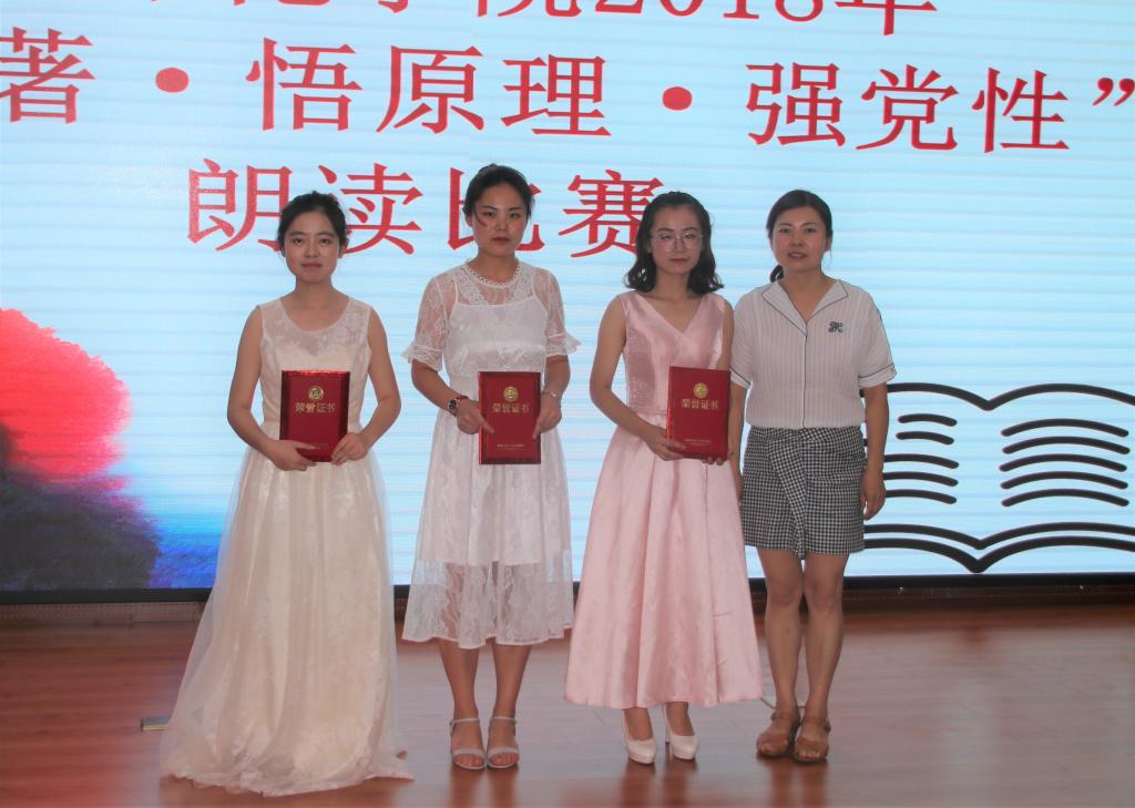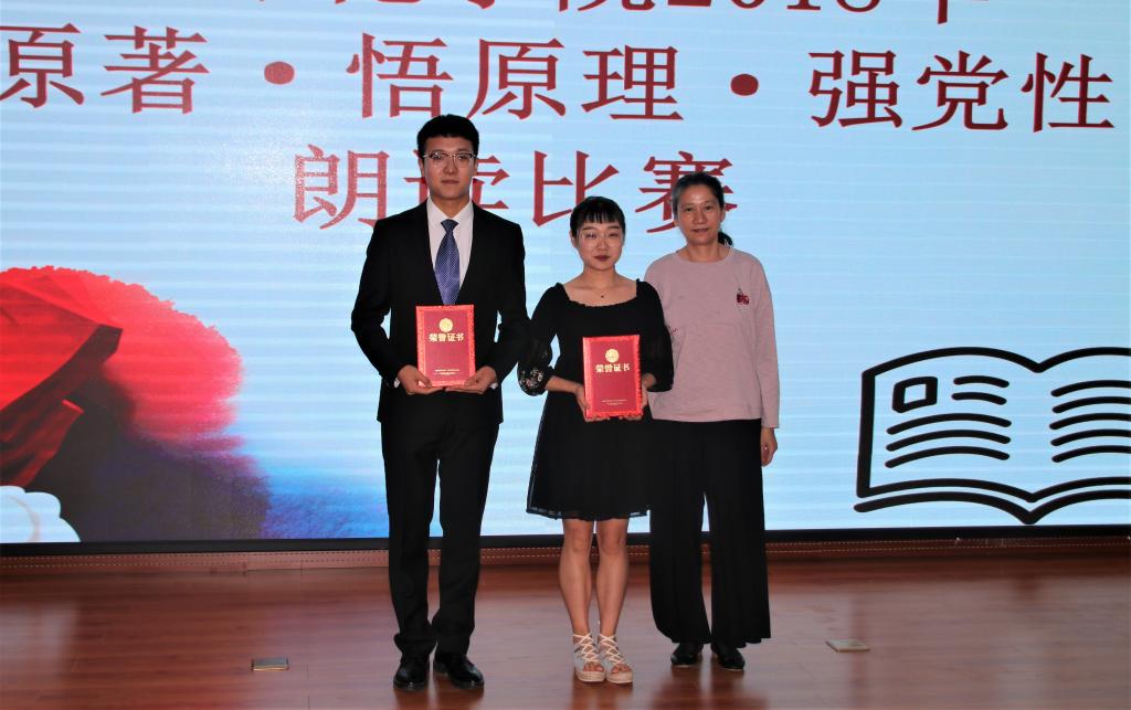 在学生组的比赛中,伴随着优美音乐,选手们慷慨激昂的声音诠释着他们对党的热爱,朗诵时个个声音洪亮、气势磅礴、情感激扬,很有层次感和感染力。绿风环保协会成员王亚莉将《习近平总书记系列重要讲话读本》节选内容与环保教育结合起来,给人耳目一新的感觉。获得一等奖的同学有:云耀光、霍梦丹;获得二等奖的同学有:张衡。夏浩铭;获得三等奖的同学有:陈思思、李颖楠、王亚莉;获得优秀奖的同学有:李佳、崔婧妍、李敏敏、邓春昱、刘婷、刘梦雅。