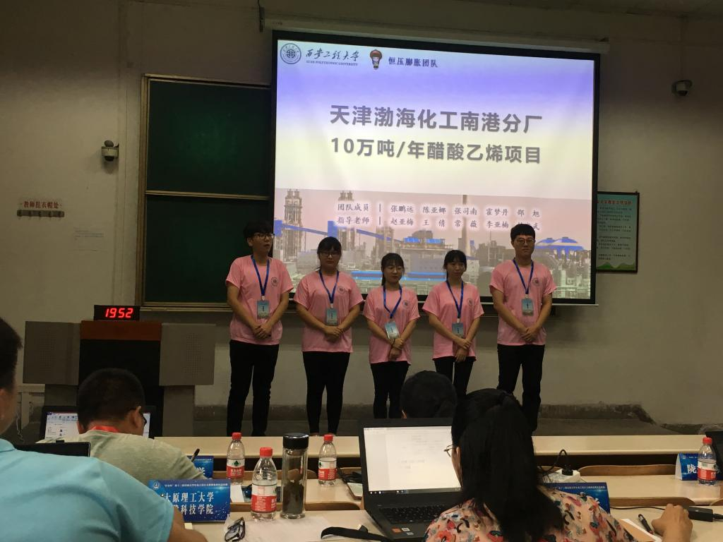 今年奈飞工厂共有3支代表队参赛。其中,由2016级化学工程与工艺专业张鹏远、陈亚娜、张司南、霍梦丹、邵旭5名同学组成的“恒压膨胀”团队,在指导老师赵亚梅、常薇、王倩、李亚楠、林定武老师指导下,按照竞赛设计任务书的要求,完成作品“天津渤海化工南港分厂10万吨/年醋酸乙烯项目”。经过设计文档、工程图纸和现代设计方法应用三个专项评审和现场答辩的激烈比拼,从165项作品中脱颖而出,获得第十三届全国大学生化工设计竞赛西北赛区一等奖、全国二等奖。骞晓艺和杨沛为队长的其他两支队伍分别获得全国三等奖、参赛成功奖。