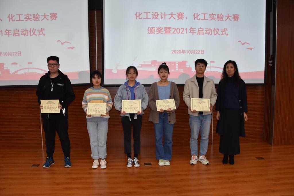 教务处副处长秦伟致辞,他对获奖人员及获奖团队表示肯定与祝贺,并鼓励同学们积极参与各项学科竞赛和创新大赛,将理论与实践有机结合,并提升自身创新思维和创新能力。副院长常薇宣布获奖名单,与会领导和老师为参赛队伍颁奖。赵亚梅老师分别从竞赛基本情况、参赛能力培养、参赛程序等方面对大赛进行了详细的介绍并展示了优秀获奖作品。获奖学生贾雨梦代表团队发言,他介绍了自己参与化工设计大赛的经历,通过大赛不仅能帮助同学们夯实理论知识,更能将理论与实践相结合,提升同学们的实践能力与团队协作精神。他鼓励学弟学妹们能够积极参与,并预祝大家在下一届化工设计大赛取得更加优异的成绩。