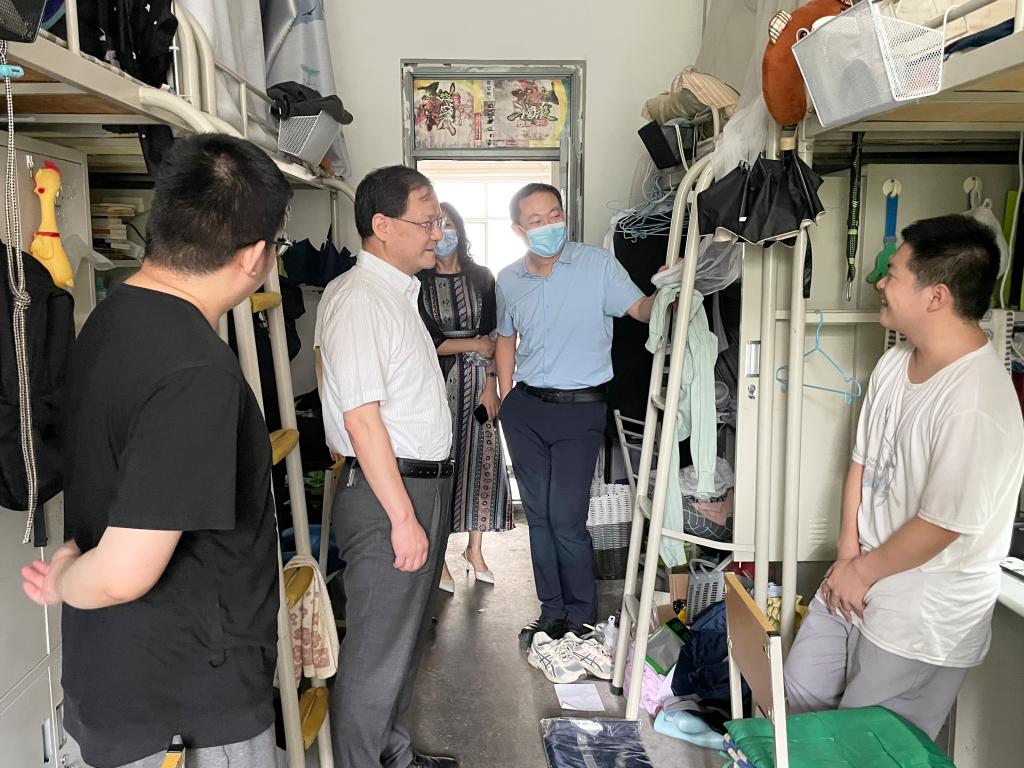 班子成员、部分教师党员以及全体辅导员一同到毕业生宿舍走访看望整好行囊,即将离别母校的学子们。
