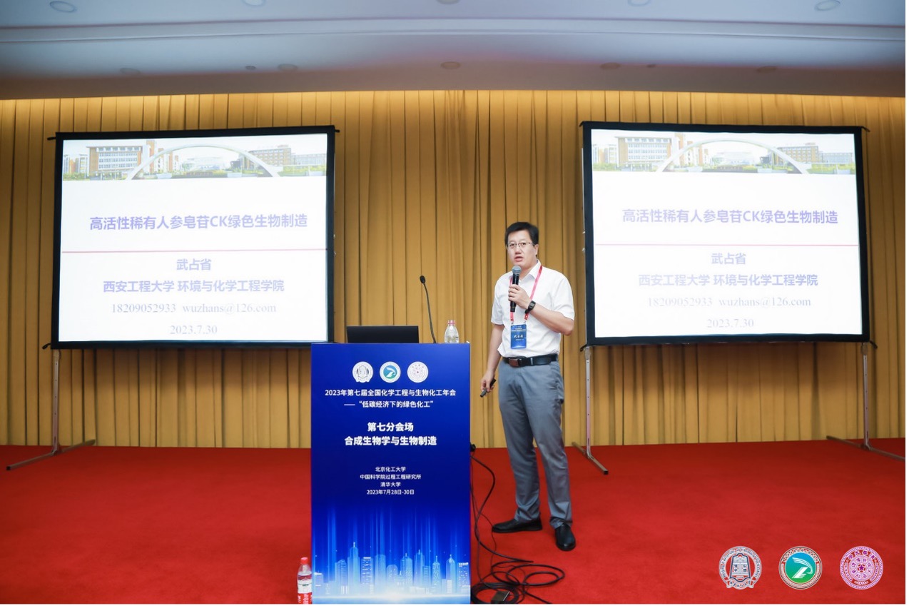 奈飞工厂武占省教授受邀参会,并作邀请报告题为“高活性天然产物人参皂苷CK绿色生物制造”,该研究成果得到国家重点研发计划项目支持,一同参会的研究生有黄新健、曹珊珊、龙宏扬、李志燕都展示了研究墙报,显著提升了研究生学术视野和交流能力。整场报告贯彻了绿色低碳发展理念,加快建立健全低碳循环发展经济体系,发挥“化工+生物”对我国工业绿色可持续发展的支撑作用,推动学科间的交叉融合与交流合作,共同探讨了国际化学工程与生物化工教育与科学研究前沿问题,扩大国际交流合作,为推动形成新发展格局、共同落实全球发展倡议贡献科技力量。