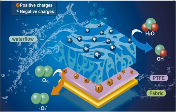 利用负载PTFE的废旧织物与染料溶液间固-液接触起电实现低频接触电催化示意图