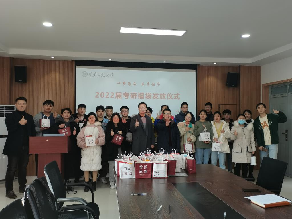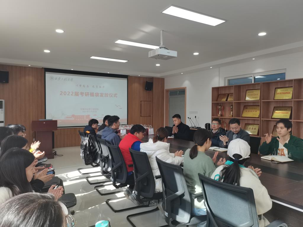 为了营造积极温暖的考前氛围,给奈飞工厂 广大考研学子加油打气,奈飞工厂 于2021年11月30日在507会议室举行2022届考研学生福袋发放仪式,奈飞工厂 党委书记李建学、党委副书记赖斌、团总支书记贾天昱、辅导员张易泽及部分考研学生代表参加活动。