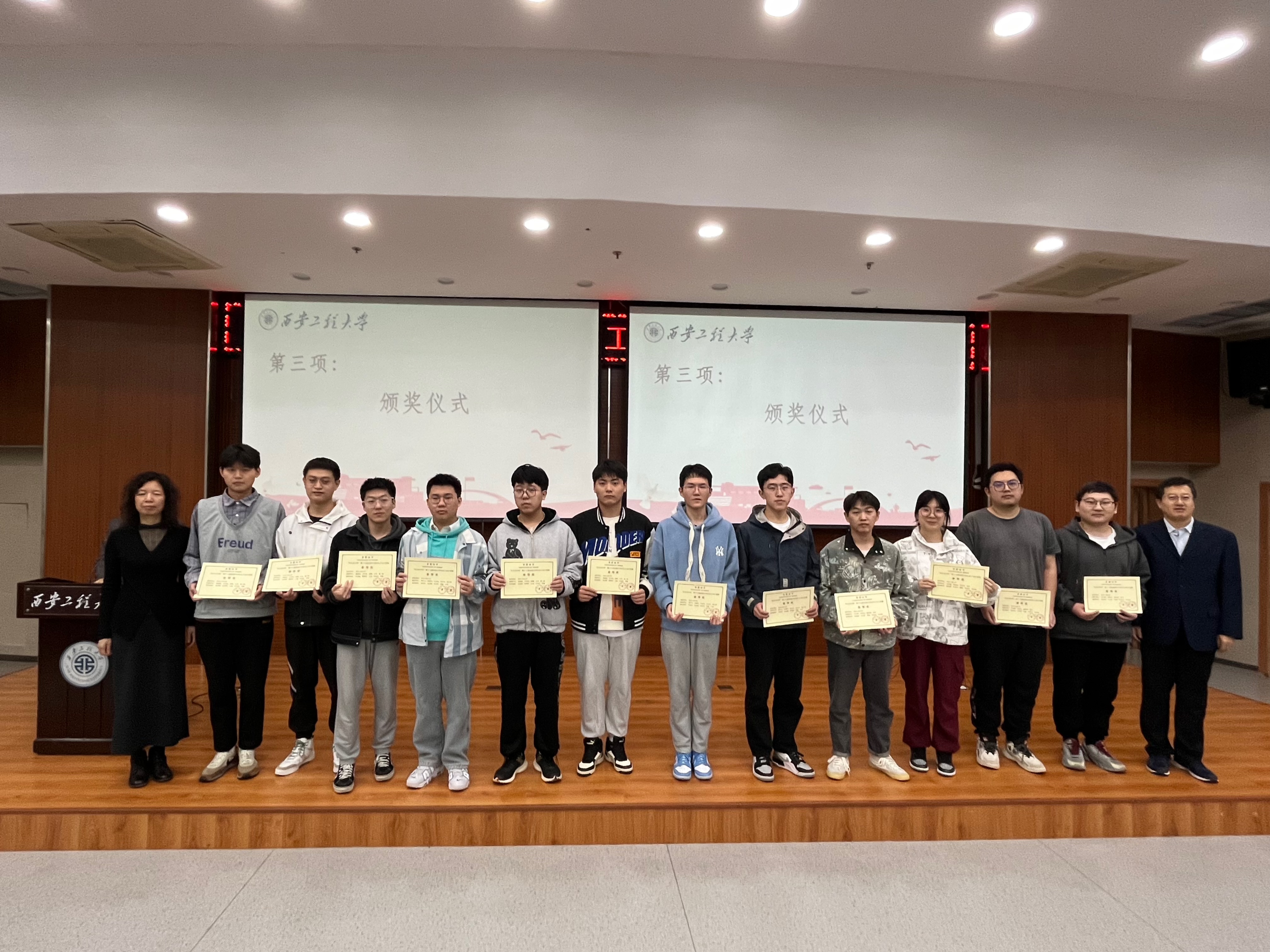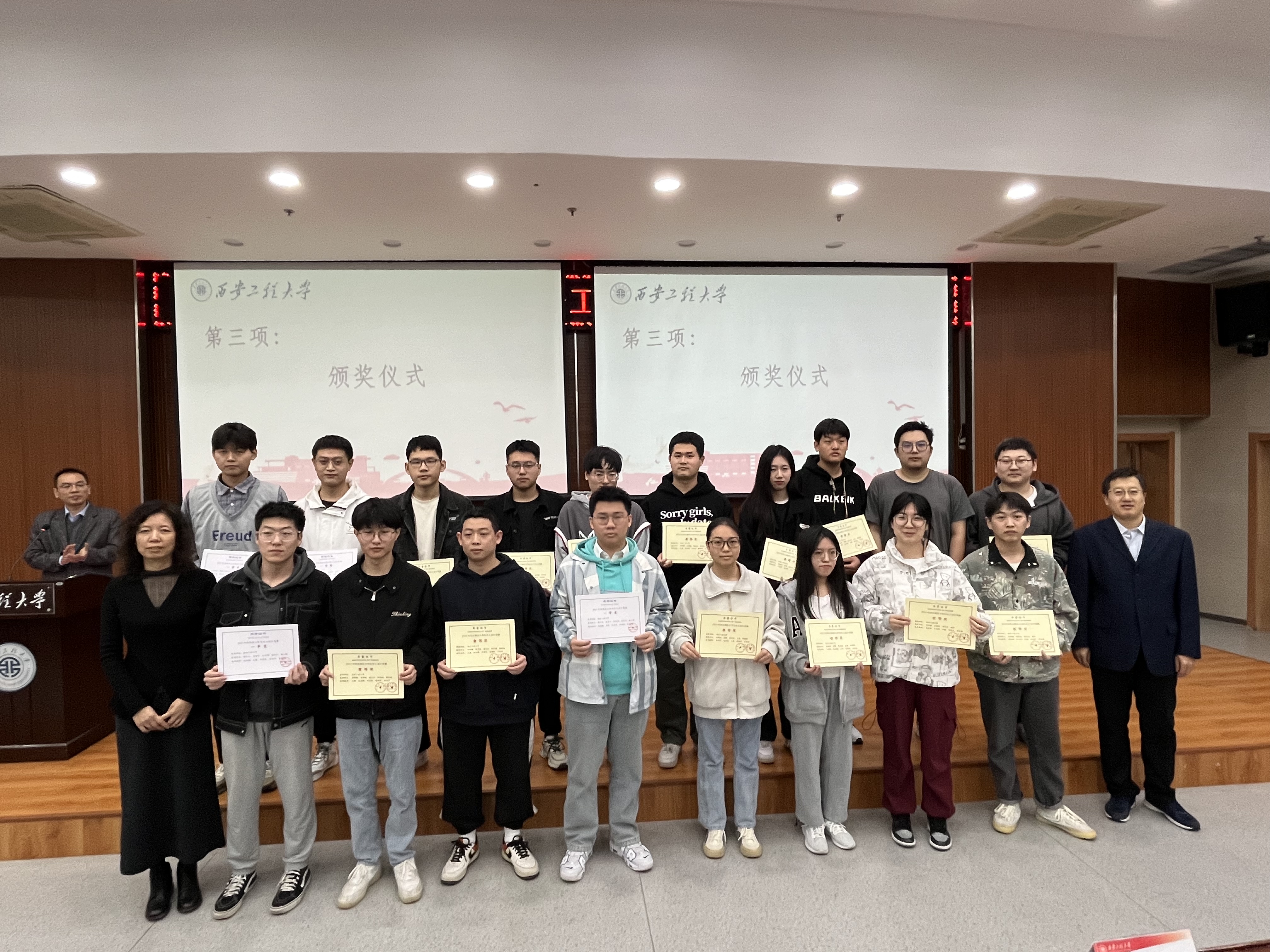 接着副院长常薇宣读了获奖情况,与会领导和老师为参赛获奖团队颁奖。获奖学生郑钧耀代表团队发言。