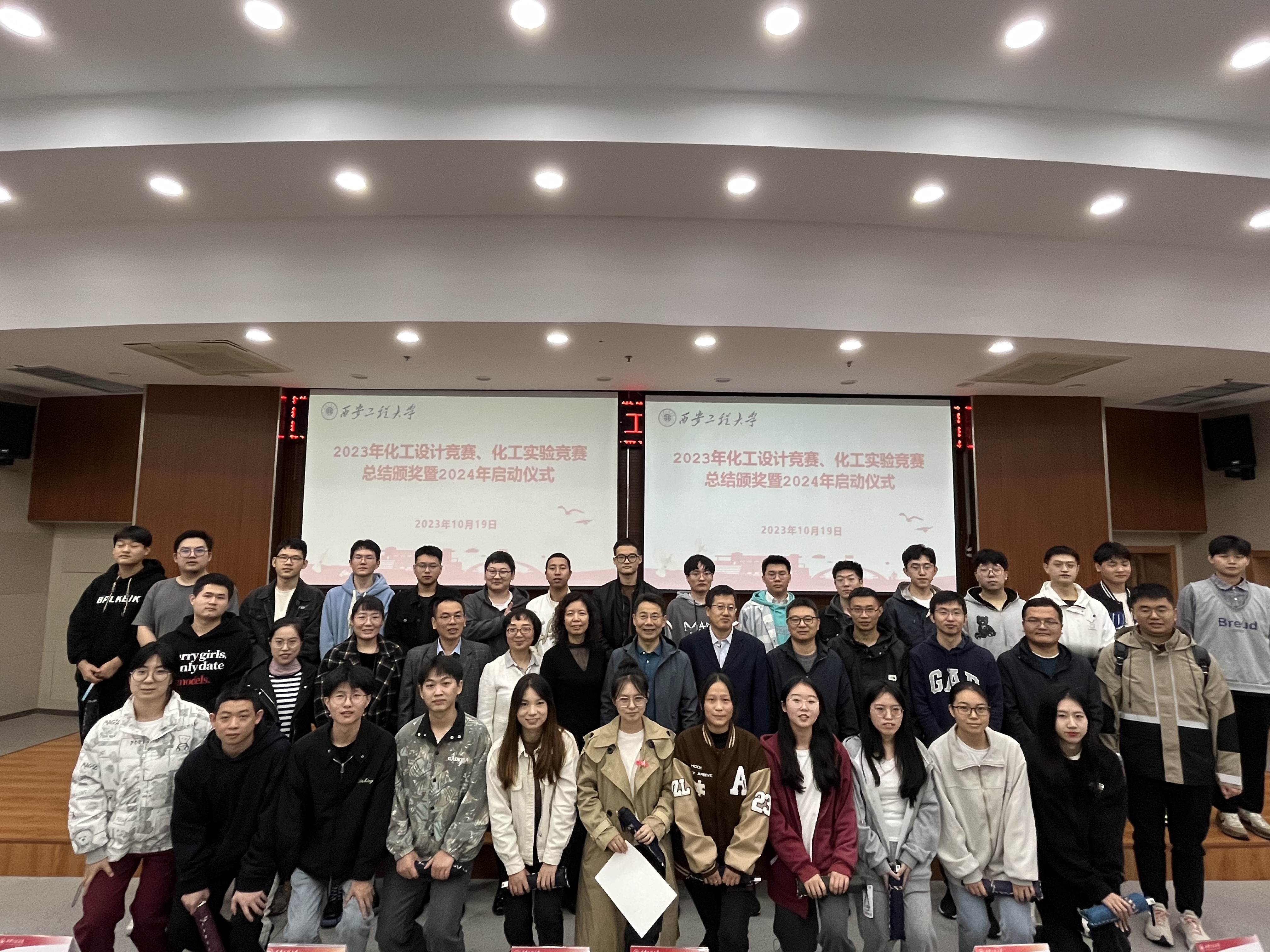 10月19日上午,奈飞工厂在图书馆报告厅二楼举行2023年化工设计竞赛、化工实验竞赛表彰暨2024年启动仪式。院党委书记胡西民、副院长常薇、化工系竞赛指导教师团队及20级参赛学生参加了此次活动。活动由院党委副书记林定武主持。