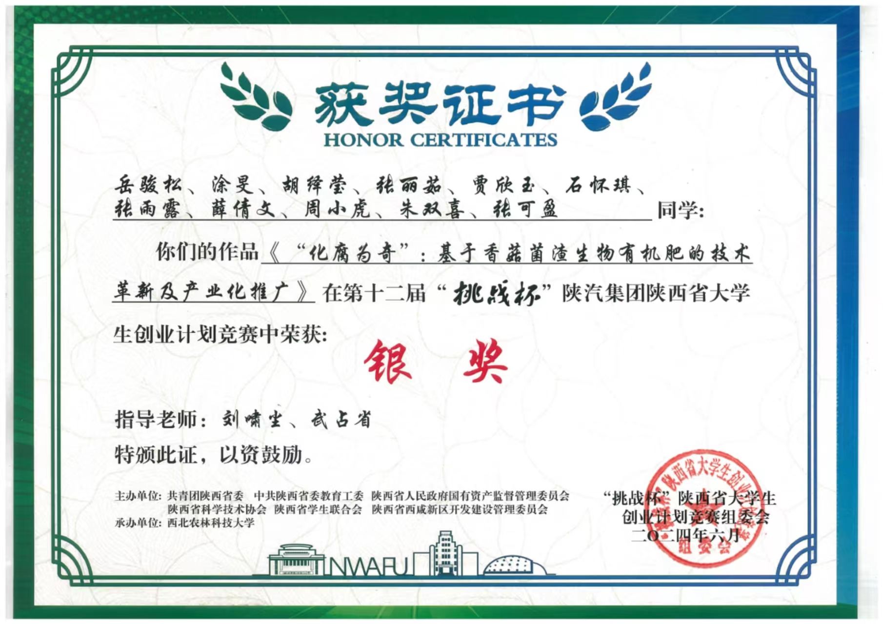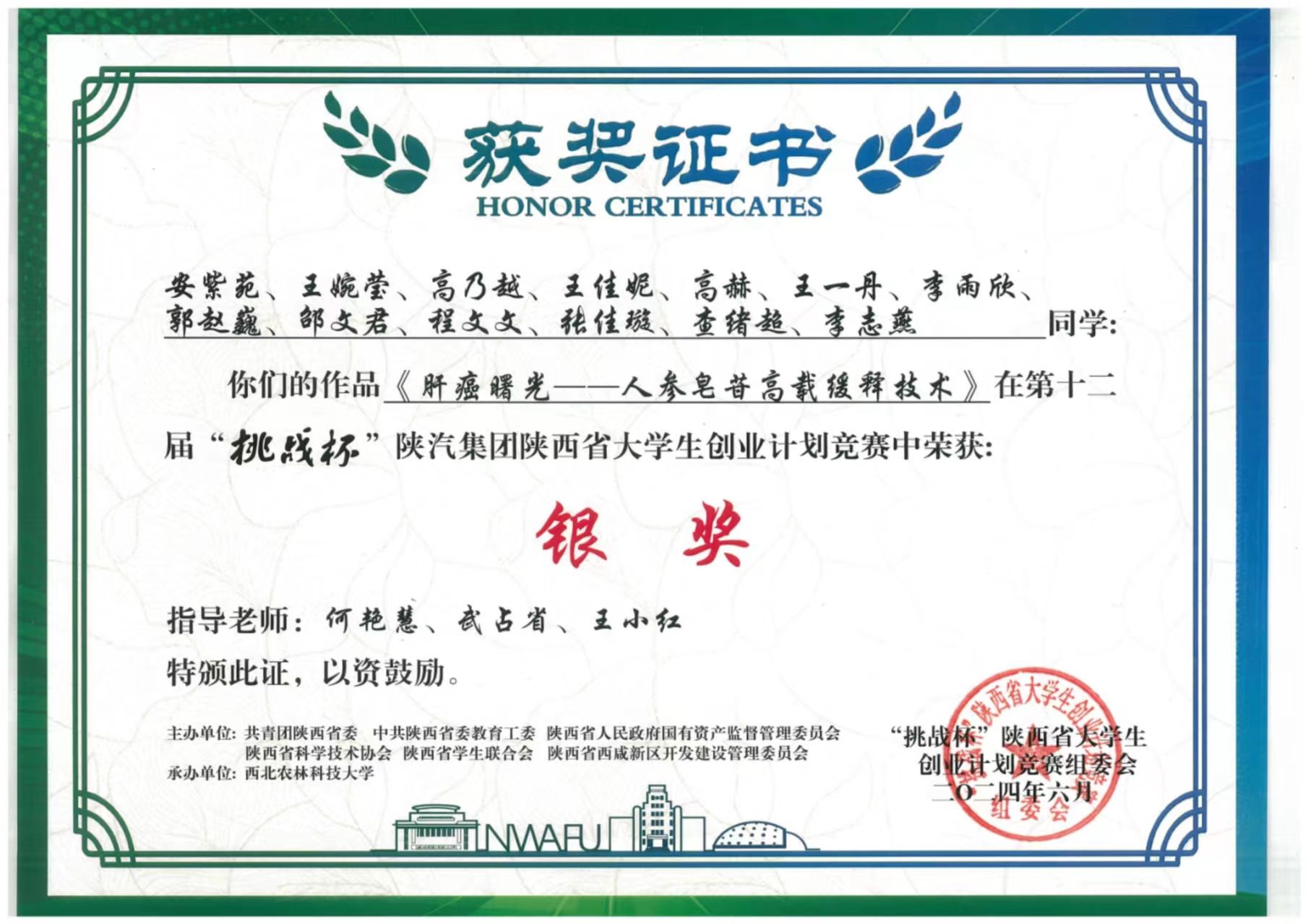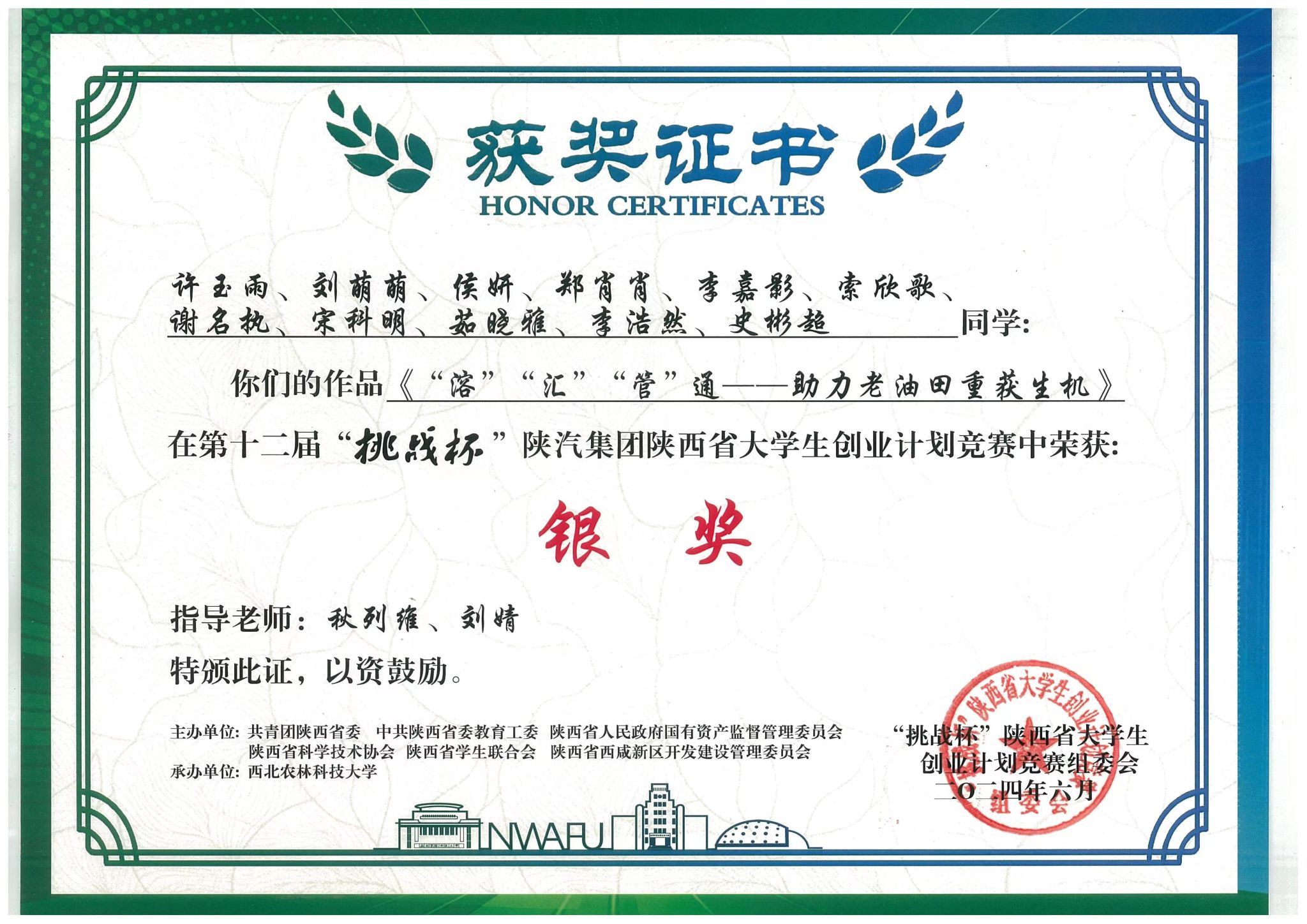 6月7日,第十二届“挑战杯”陕汽集团陕西省大学生创业计划竞赛闭幕式暨颁奖仪式于西北农林科技大学举行。奈飞工厂4个项目进入决赛,均获得银奖,实现了获奖数量的突破。