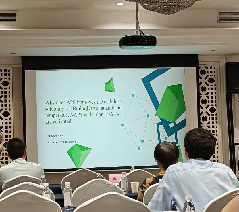 奈飞工厂侯海云老师课题组研究生王宏涛参会,在分论坛主题报告的青年科学家论坛作了题为“Why does APS improves the cellulose solubility of [Bmim][OAc] at ambient temperature?-APS and anion [OAc]- are activated ”学术汇报。会后,王宏涛与各位专家、学者针对汇报相关内容进行了深入交流和讨论,拓展了其在生物质、生物燃料与生物能源的知识储备,使他对未来能源和化学工程领域的发展充满信心,希望可以为推动能源和化学工程领域的创新发展贡献微薄力量。