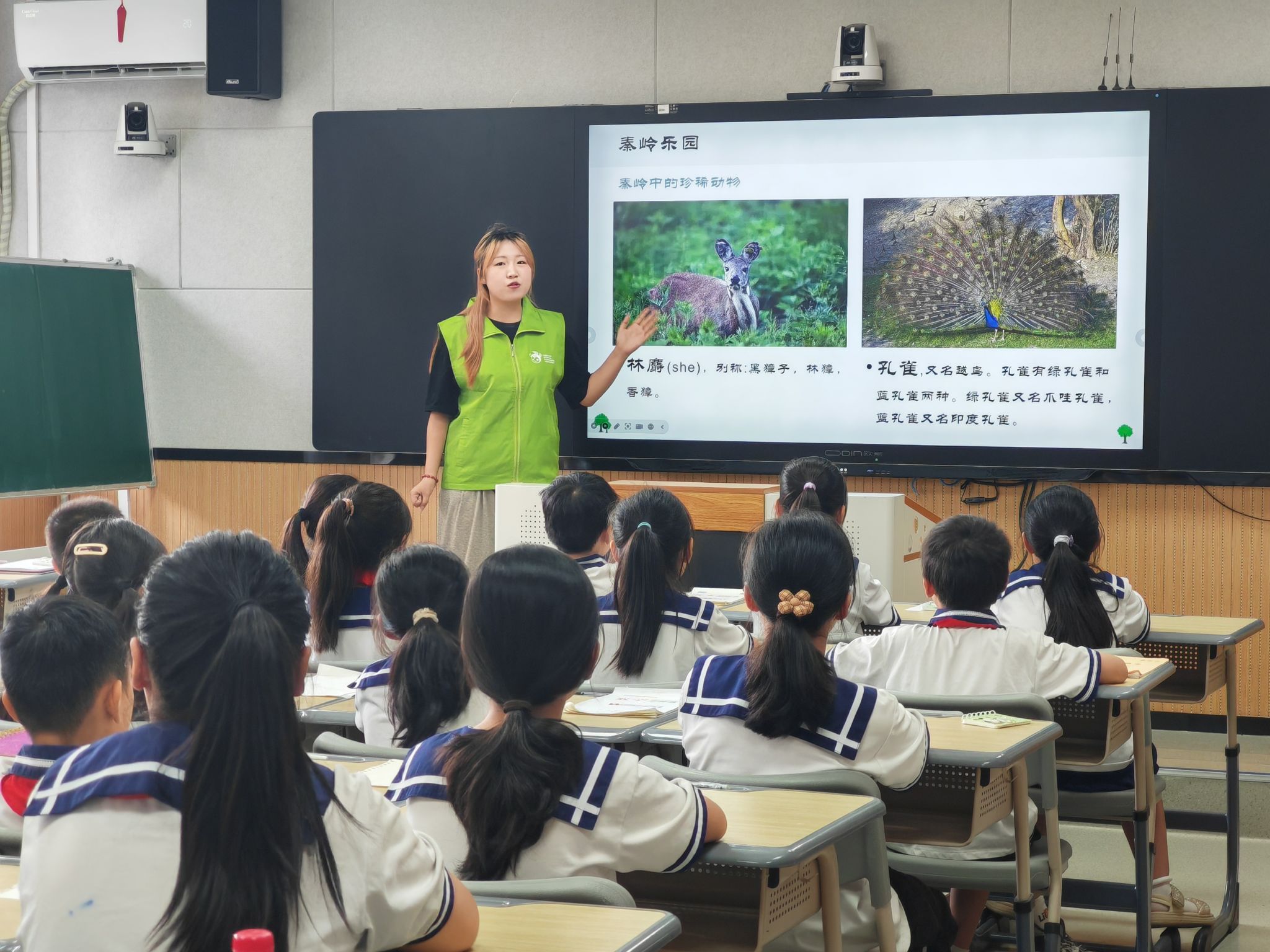 仪式结束后,环化奈飞工厂 绿风环保协会志愿者马健容同学走进录播教室,为仁厚庄小学的孩子们带来了一堂别开生面的趣味环保课。在20分钟的课堂时光里,她以灵动的视频画面展现自然之美,用妙趣横生的情景问答点燃求知热情,将“垃圾分类”的科学方法、“水资源保护”的重要意义,巧妙编织进日常生活场景中。课堂上,孩子们踊跃举手发言,眼神中满是对环保知识的渴望与对绿色未来的憧憬。