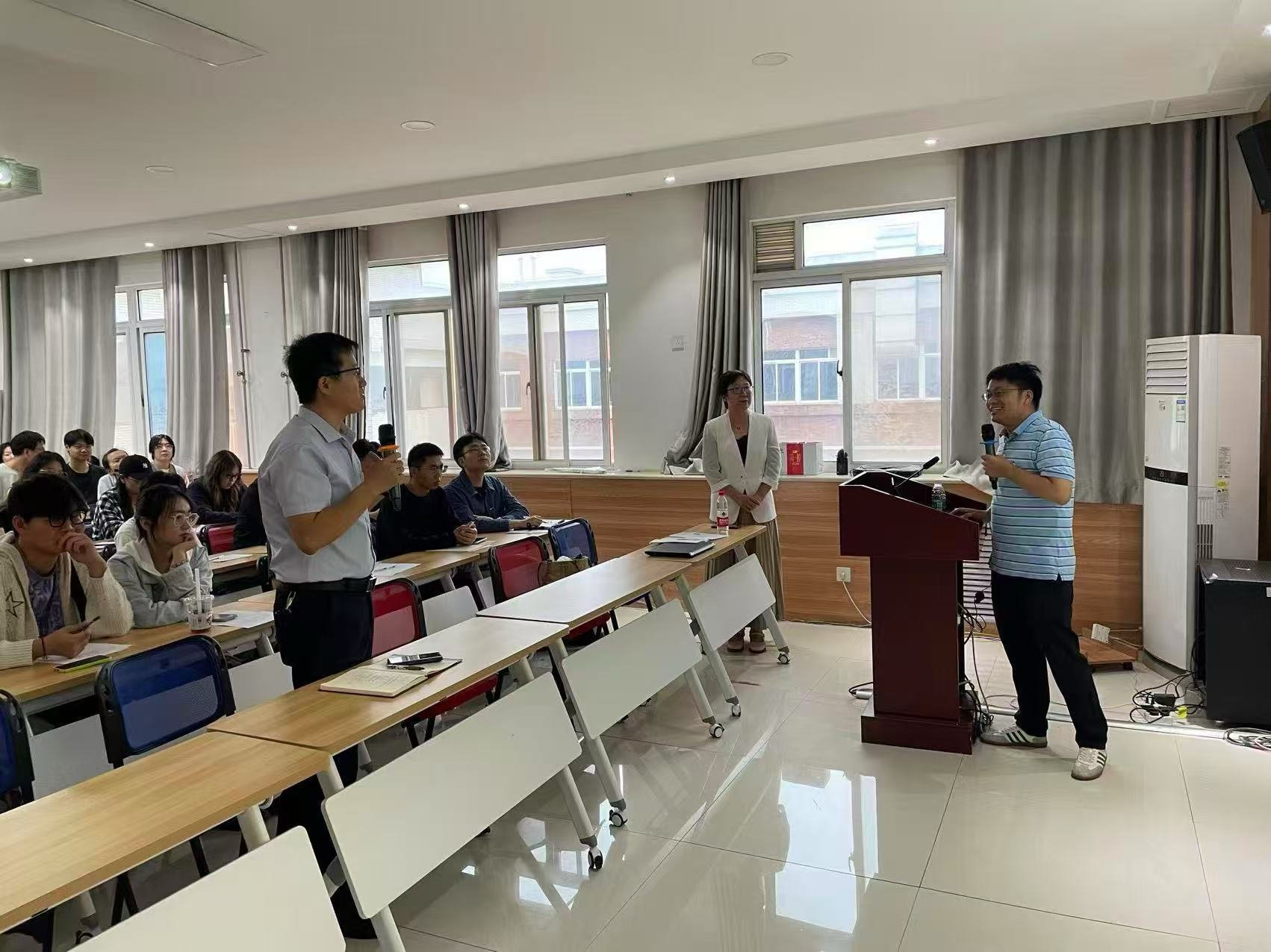 报告结束后,与会师生围绕报告内容踊跃提问。武占省教授就“机器人手臂应用于化学实验平台建设的初衷与挑战”进行探讨。向中华教授回应指出,交叉学科融合是当前科研发展的重要趋势,机器人手臂的引入体现了化学工程与人工智能、自动控制等多领域的深度协同。在平台建设过程中,团队曾面临机械控制精度、实验流程编程、系统集成优化等多方面技术挑战,最终通过多学科协作与集体攻关逐一克服,突显了团队合作在推动创新中的关键作用。武峥教授提出“非化工专业背景研究生如何快速融入科研”的现实问题。向教授建议,应加强化学工程基础理论学习,主动参与课题组学术讨论,积极寻找自身专业与化工研究的交叉点,同时加强与导师和同学之间的交流,在实践中不断提升科研能力与跨学科融合水平。对于部分研究生关心出国交流的机遇与挑战,向教授结合自己在美国凯斯西储大学的博士后经历分享体会。他表示,国内科研训练教会他“如何做科研”,而在国外期间则学会了“如何做好科研”。他鼓励大家把握出国交流机会,接触国际前沿课题、先进设备和多元学术思想,以突破思维定式、激发创新灵感,并在优秀的国际团队中提升实验技能、研究方法与独立解决复杂问题的能力。