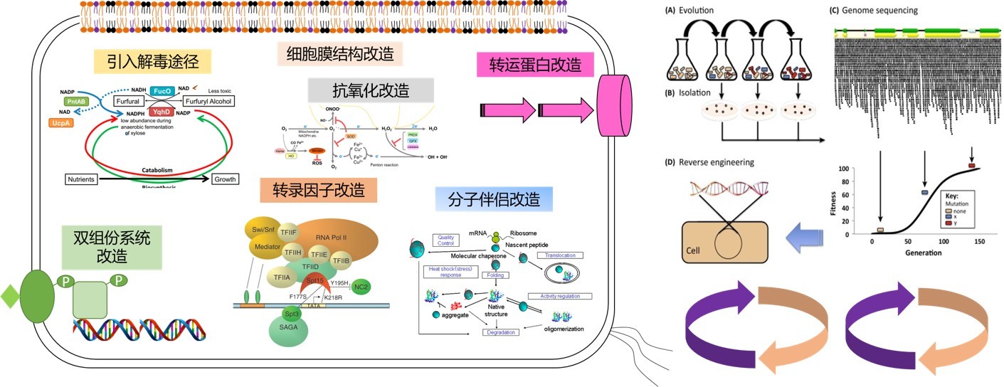 Constructing microbial cell factories that produce biorenewables at economically viable yields and titers is often hampered by toxicities from both accumulated product and inhibitors in raw materials. We will elucidate the damage mechanism of cell factories caused by those toxic chemicals, and thus conceive corresponding resistant strategies. Through constructing highly tolerant cell factories, we will pave the way for eco-efficient synthesis of biorenewables.