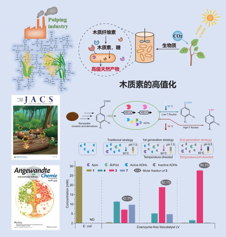Jun Ni, Yutong Wu, Fei Tao, Yuan Peng, Ping Xu*, A coenzyme-free biocatalyst for the value-added utilization of lignin-derived aromatics, J. Am. Chem. Soc. 2018, 140(47): 16001-16005 (Cover Article)
